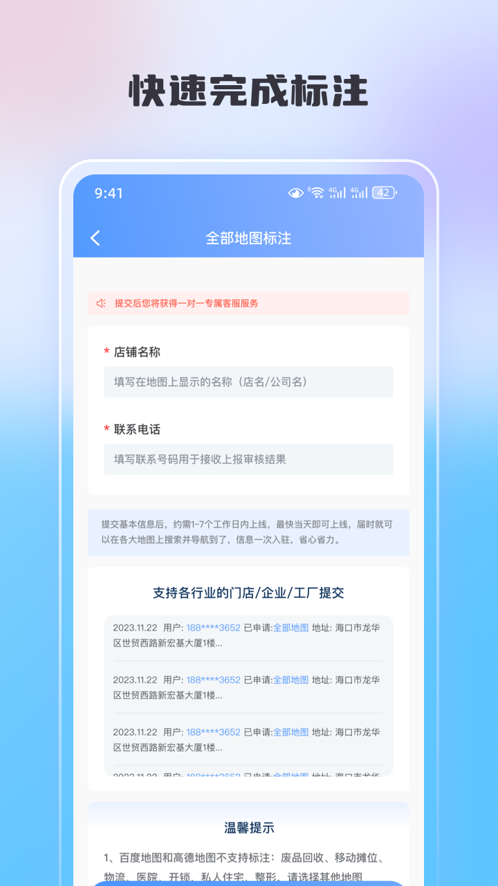 地圖標(biāo)注管家,提供代標(biāo)注服務(wù),微信地圖標(biāo)注 店鋪名稱(chēng),讓客戶快速找到您的店,標(biāo)注公司位置企業(yè)名片,微信地圖標(biāo)注.支持全部熱門(mén)導(dǎo)航地圖標(biāo)注快速申請(qǐng)標(biāo)注,全地圖標(biāo)注